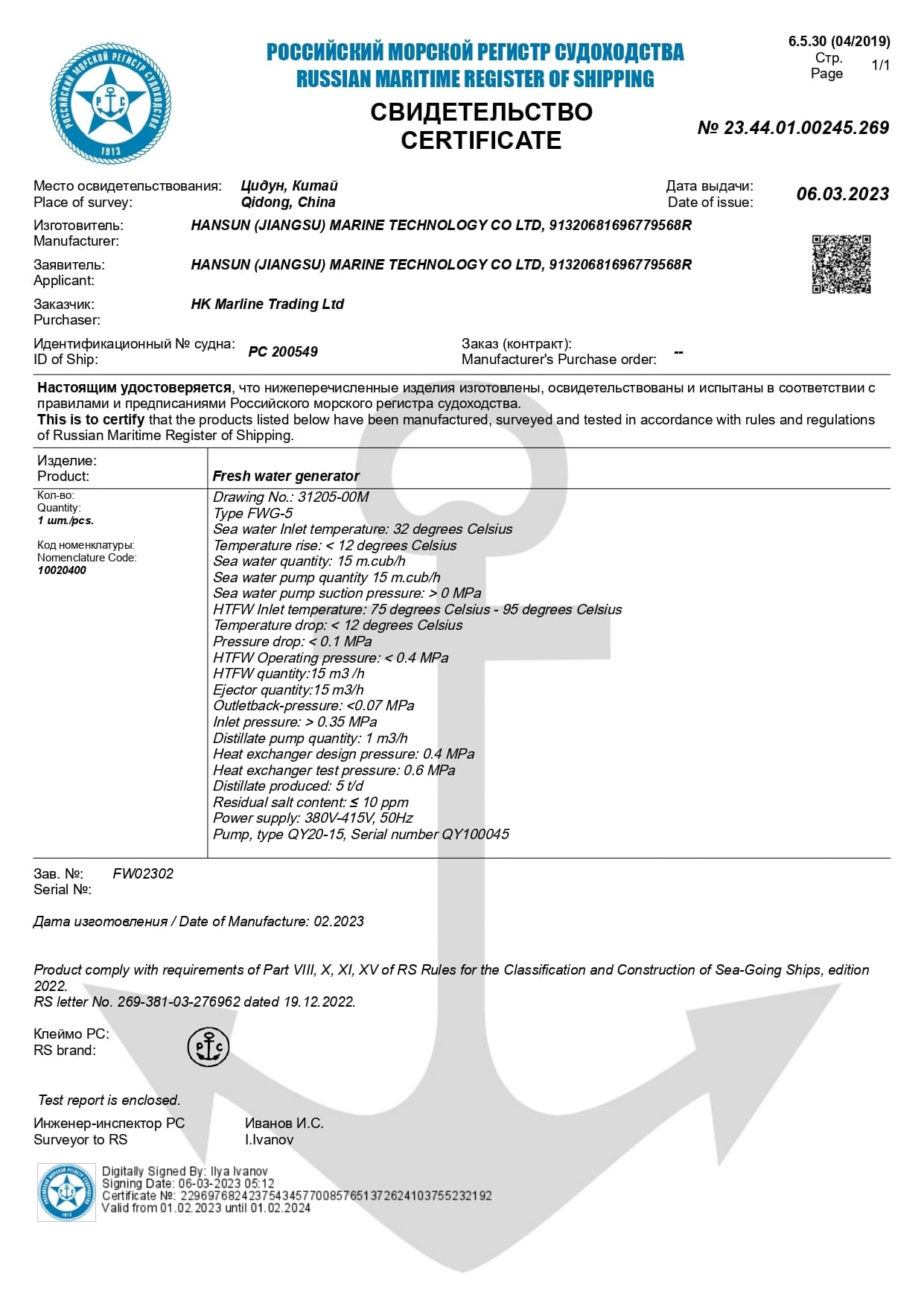 ВДГ CUMMINS, АДГ CUMMINS, сепараторов топлива и масла, опреснительных установок производительностью 5 тн/сутки.